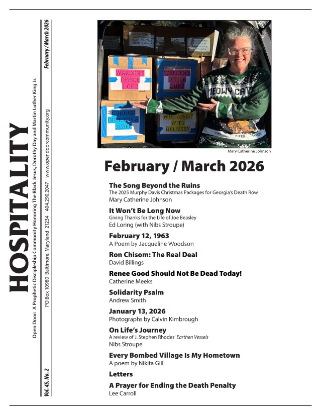 The preferred way to Request a copy of Murphy’s book, Surely Goodness and Mercy: A Journey into Illness and Solidarity, is to send an email to opendoorcomm@bellsouth.net. You can also send us a written request to The Open Door Community, PO Box 10980 Baltimore, MD 21234-0980.
