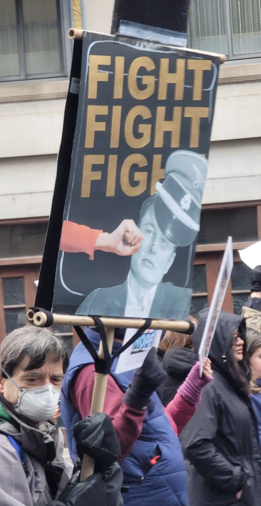 The rally was excellent with many speakers representing a wide array of ethnicities, genders, Black, Brown, Asian and White. I particularly liked Ben Jealous whom I knew when he was president of NAACP. Mr. Jealous was active in the Troy Davis case. Amy Goodman and Ben Jealous were present the night the state of Georgia murdered Troy.
